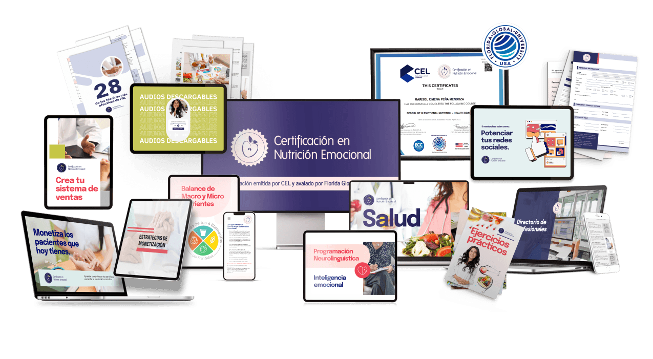 Desde ya puedes entrar a la Certificación de Nutrición Emocional, completar cada módulo y comenzar a aplicar lo aprendido en Nutrición Emocional.